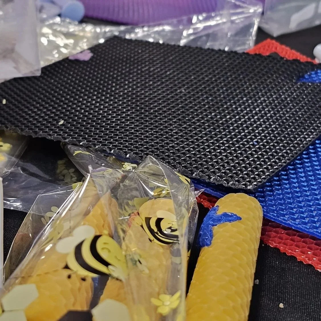 A safe and accessible option where participants roll wax sheets and decorate them to take home